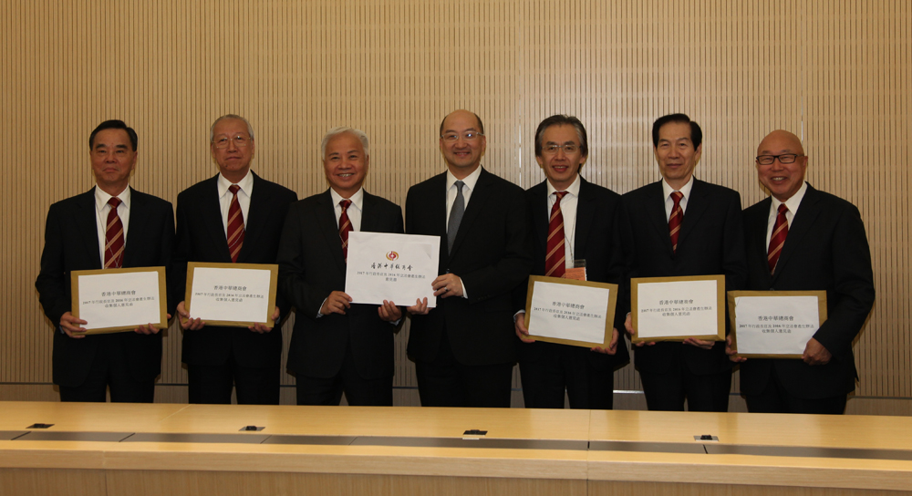 圖:中總向譚志源提交政改意見書,左起:林樹哲、袁武、楊釗、譚志源、方文雄、盧文端及莊學山