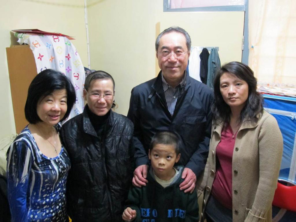 圖:林小姐(右一)和蘇小姐(左二)表示,很高興唐英年夫婦親身來中轉屋探訪,了解她們的近況