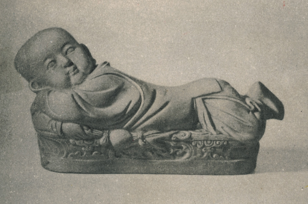 「北宋」除了燒造茶盌、盤、缽等日用器皿為主外,北宋晚期還特製甚少量的白瓷孩兒枕,造型如孩兒伏臥狀,背作枕面,浮雕紋飾精美,神態活現(見附圖),乃白瓷塑之早期極品。北京故宮博物院就珍藏了「北定」白瓷孩兒枕。