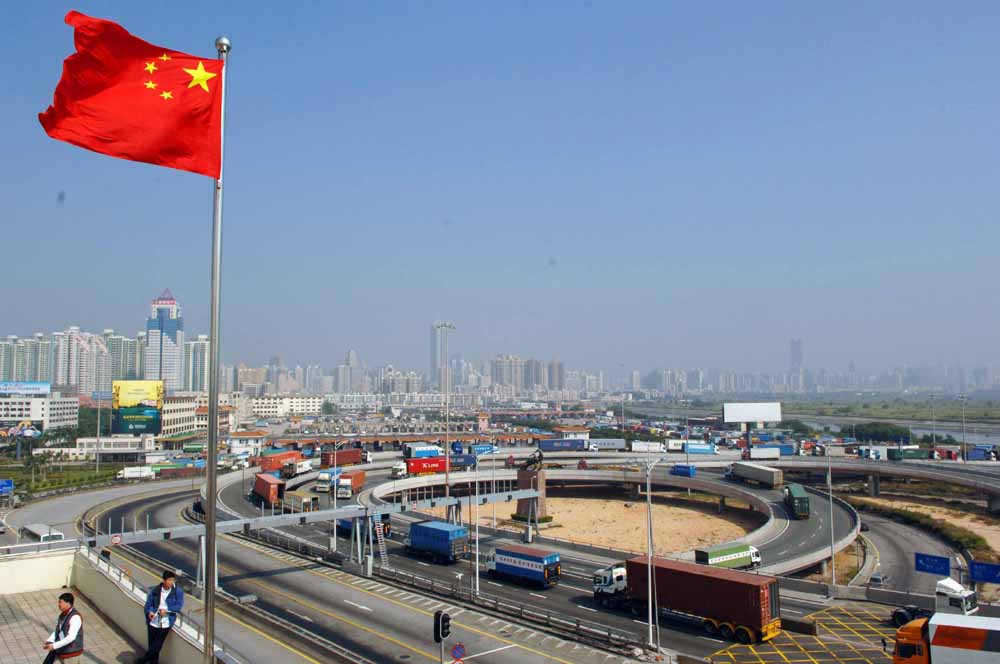 圖:深圳市政府不久前出台產業轉型升級新舉措,計劃2015年前有序轉移企業1萬家,騰出750萬平方米發展空間。圖為深圳皇崗口岸\中通社