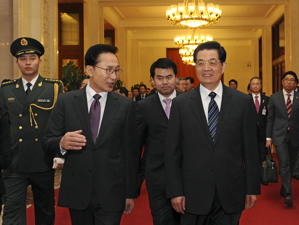 李明博完全贊同胡錦濤關於進一步發展兩國關係的重要意見。他表示,希望以兩國建交20周年為新的起點,發展更加密切的韓中戰略合作夥伴關係。韓方願同中方共同努力,進一步加強經貿、能源、新能源、環保、金融、旅遊、人文等領域合作以及在國際和地區問題上的磋商與協調,推動兩國關係向更高層次發展。