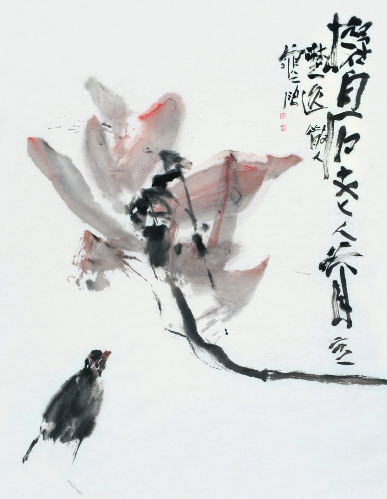 文人寫意畫的意蘊更多是依託於畫者的人文素養。其中,意境是畫家精神氣質、感情意念之流露;意境的營造需要畫家對藝術充分理解和正確領悟。而大寫意尤以筆墨果斷凝練老辣、氣勢清爽明豁靈動為上品。崔兆禮的大寫意花鳥畫具有很濃重的傳統意筆水墨韻味,從中可以理出清晰的傳承脈絡,其中蘊含的情愫,飄揚的文采,展現出一個現代派新文人的古意情思。從整體面貌來說,他的畫重筆墨表現,放棄對客觀物象的逼真寫實描繪,以書法用筆表現入手,以章草筆意入畫,儼然遵守着傳統文人寫意畫的筆墨秩序。