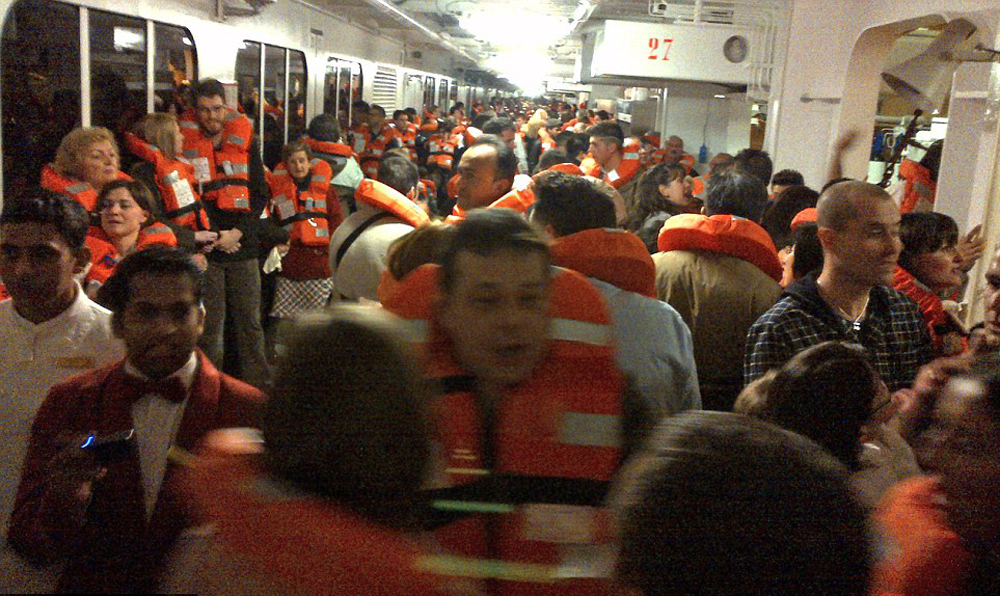 乘客最初被告知,船身搖晃、停止前進與電力問題有關,接着被指示穿上救生衣,前往搭救生艇。