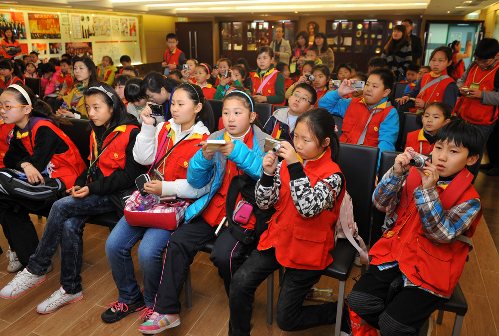 六十多名小記者,就讀三至五年級,來自江蘇、江西和上海等省市,一律穿上印有「小主人報新聞學校」鮮紅而醒目的夾克,手拿小本子和數碼相機工作的架勢,像極了專業記者。