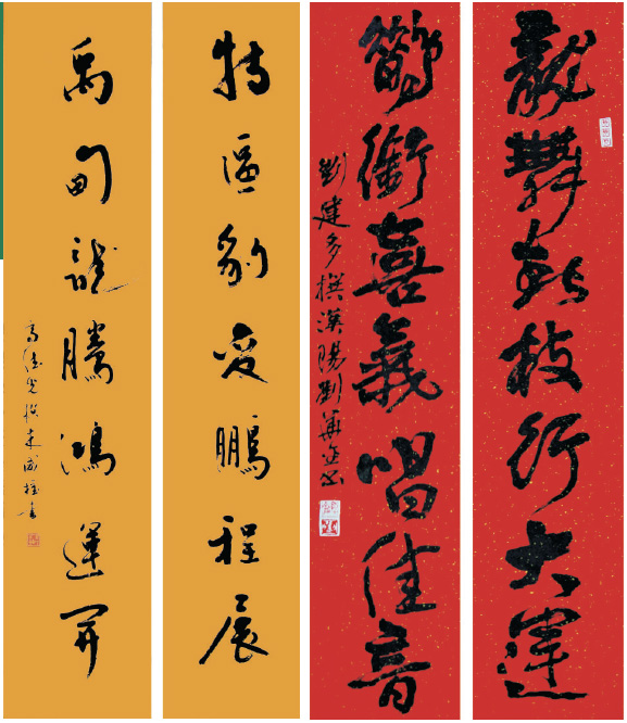 圖:左聯:陳錫波(香港)撰聯,林敏恩(香港)書法;右聯:劉建多(深圳)撰聯,劉華金(漢陽)書法