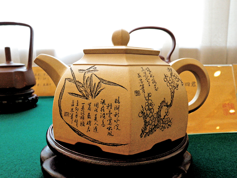 圖:楊秀芬製作「六方四君子壺」\本報攝