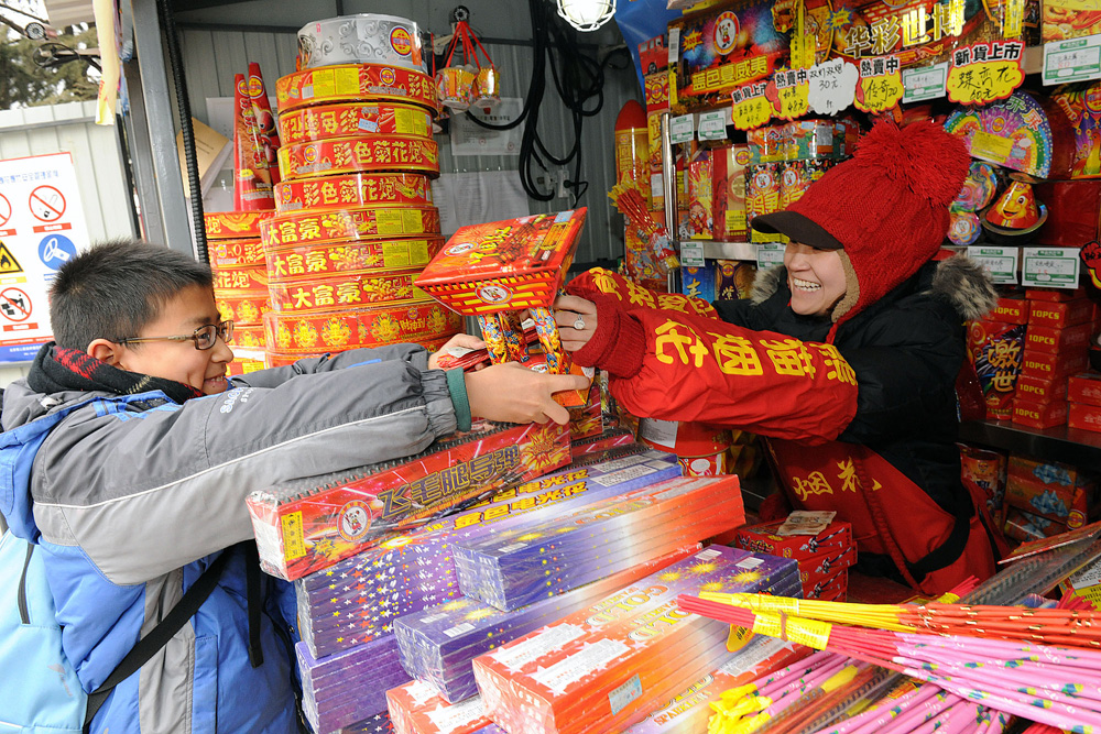 □北京市煙花辦今天表示,北京全市銷售煙花爆竹的零售網點比去年下降了一成,三家指定煙花爆竹銷售公司的整體備貨量從去年的91萬箱減少到了80萬箱。一些網友在微博上表示,希望能燃放煙花爆竹的政策「限改禁」,不要因為煙花爆竹的大量燃放而污染空氣和擾民。【本報記者王德軍北京二十一日電】