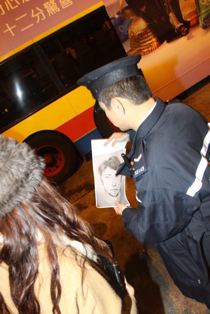 昨日凌晨二時許,約十名警員手持色魔拼圖,到案發現場鴨脷洲邨巴士總站,向夜歸邨民發問卷進行調查,及尋找線索或目擊人士,搜集情報希望盡快緝捕色魔歸案,至約四時許警員始離去。消息稱,色魔犯案後倉皇逃跑,曾行經海怡半島第一期六座大堂對開,被閉路電視拍下容貌,警方在案發後通宵蒐集區內所有閉路電視錄影資料,經分析後,於前日晚上發放色魔容貌拼圖,呼籲市民提供消息協助緝捕。