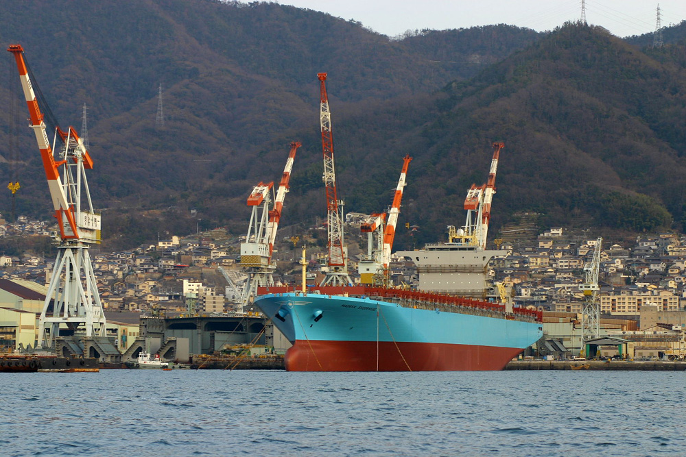 圖:JFE和IHI的造船業務合併,此圖為IHI正在為馬士基建造一艘萬箱船