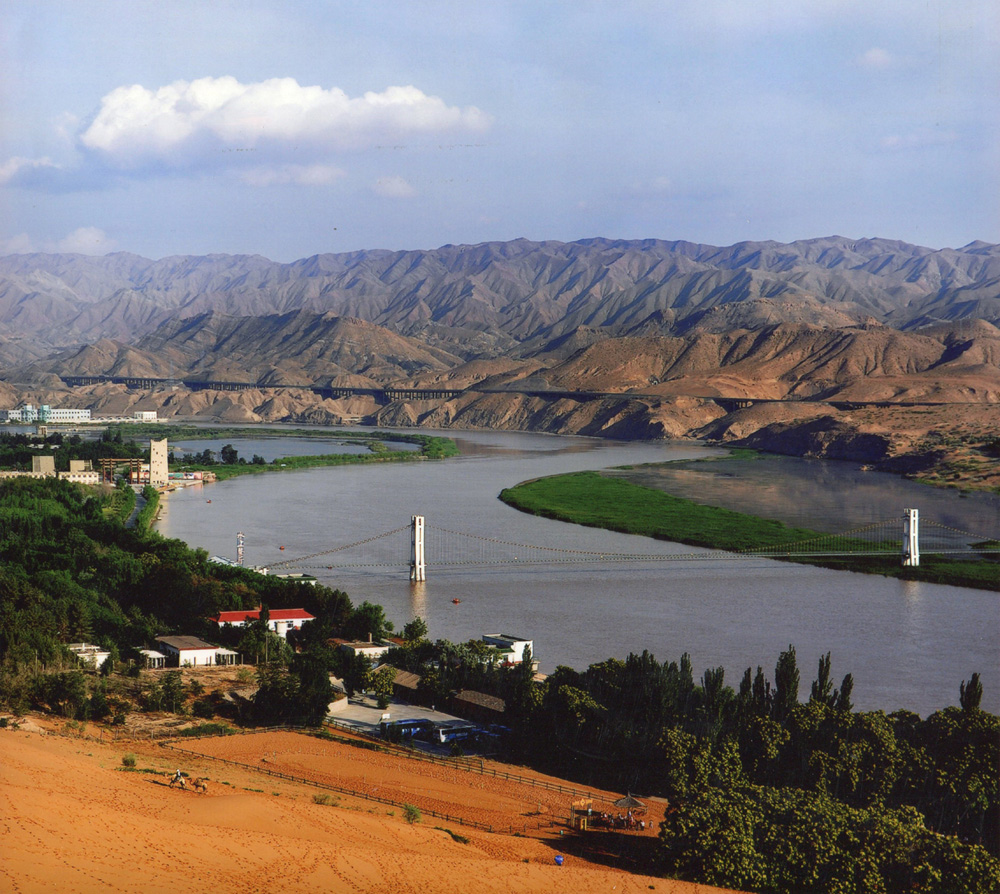 圖:通過利用「草方格」,中衛人在沙漠中創造出了綠洲。圖為沙坡頭黃河灣一角\資料圖片