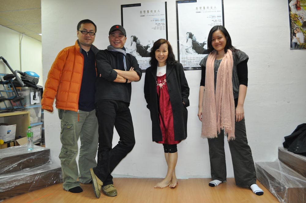 圖:編劇梁翠珊(右起)、羅靜雯、陳敏斌與舞台監督楊國明/本報攝