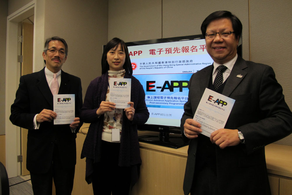 □因應七萬二千多名首屆文憑試考生及三萬多名末屆高考生同步畢業,教育局推出全新的「專上課程電子預先報名平台」(E-APP),供學生統一向二十二所專上院校遞交申請表,免卻學生放榜後四處「撲學校」之苦。教育局預計,參與E-APP的院校將提供逾四百個自資學位及副學位課程,學額逾四萬個。/本報記者 劉家莉