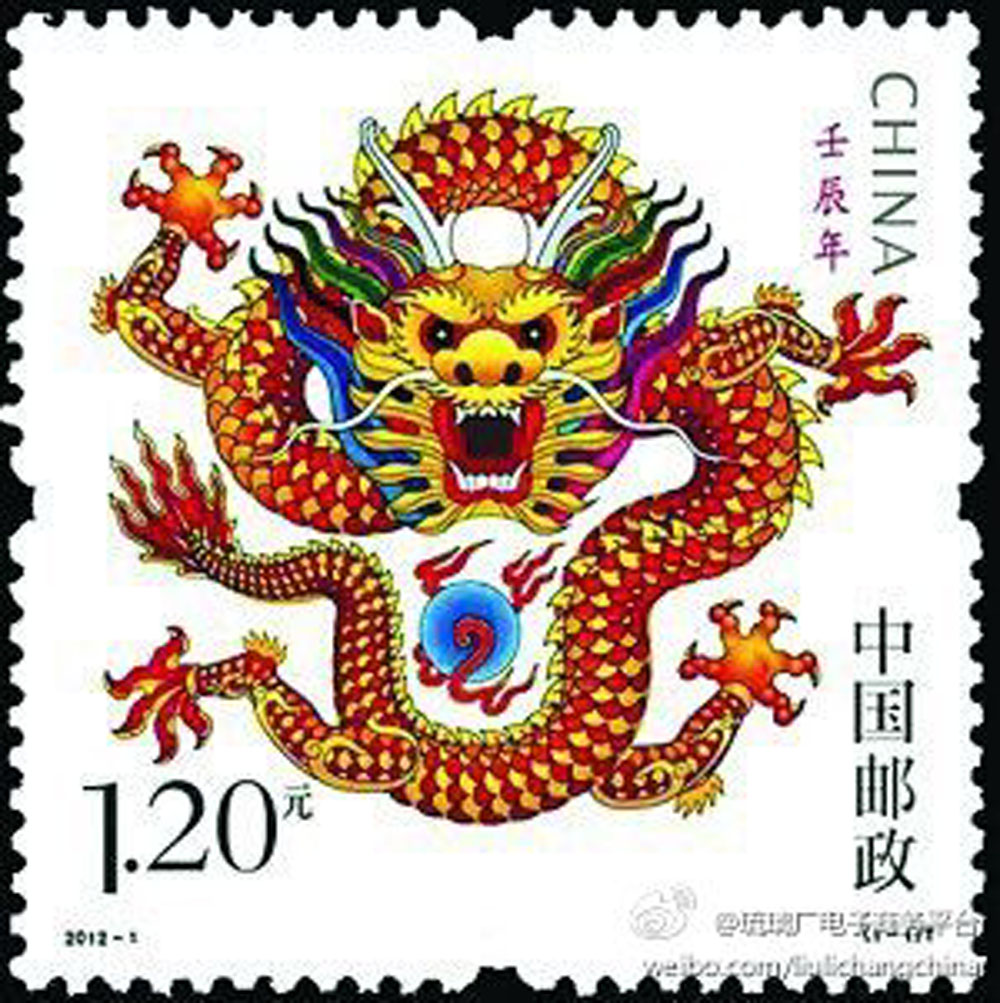 圖:2012壬辰郵票/今年的壬辰龍票,包含了龍的象徵意義的多重性:龍首居中顯示正氣,寬額生出智慧,亮睛表示神采,劍眉象徵英武,獅鼻寓意富貴,鹿角長壽,鷹爪銳利,牛耳則有獨佔魁首之意。