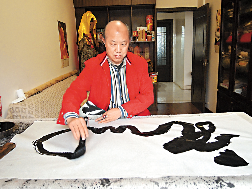 現場看吳家貴寫龍,縱橫之間,像見亢龍飛天,狂放不羈;圓轉之處,如聞梵音佛語,溫婉平和。龍字十七筆,橫豎撇捺、點折勾彎樣樣俱全。
