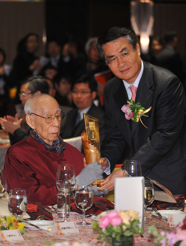 王國華介紹了「中華藝文獎終身成就獎」,宣讀評委會對饒教授獲此殊榮的高度評價。饒宗頤教授在謝辭中分享,他覺得就算在他現在這個年紀,對中國文化藝術的研究及追求,仍然需要不斷地努力。《易經》說「天行健,君子以自強不息。」這句話他終身奉行的。他覺得不論是對學術或藝術上的追求,最主要的還是要本着求真、求是、求正的態度。用這個態度去探索中國深遠的文化,應該是一條寬闊的正道。他表示自己這一點點的成就,其實在中國文化的長流中,只不過是小小的一個波浪。對於大家的支持,他感到無限感激,對大家的讚譽,他說一句不敢當。