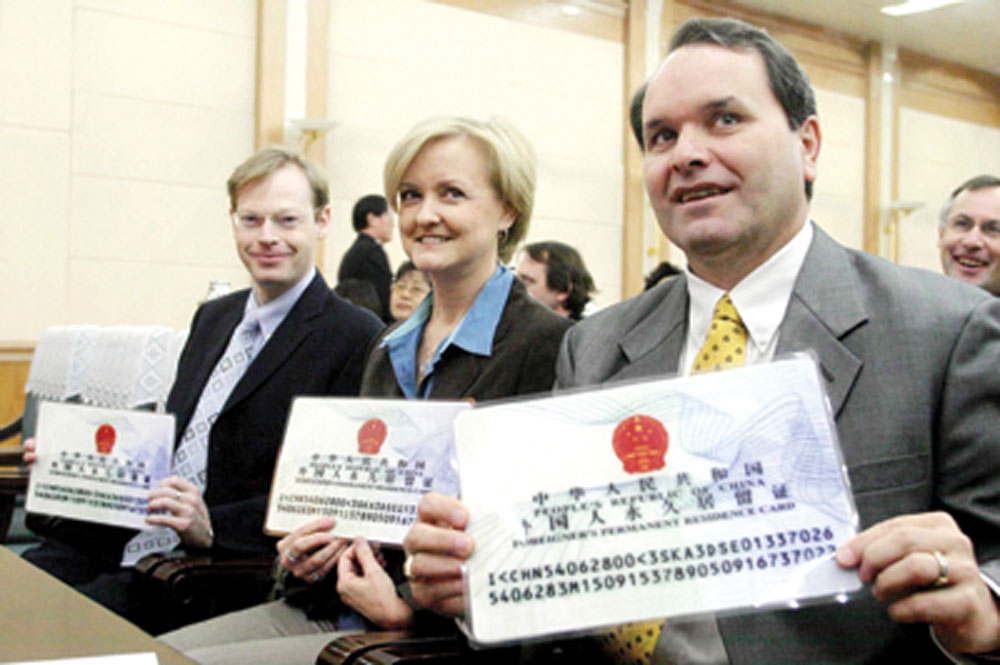 圖:外國人獲中國政府頒發綠卡,可在中國大陸永久居留
