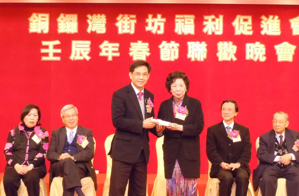 許英揚則表示,二○一一年是平凡中不平凡的一年,全球經濟體系出現不明朗因素,香港或多或少也受到影響,然而香港人憑着努力拚搏的精神,順利走出困境。另外,該會在多方面與政府合作,如在地區諮詢方面,協助政府收集居民不同的意見,讓政府充分掌握社會脈搏,該處很樂意為坊眾提供各項服務。