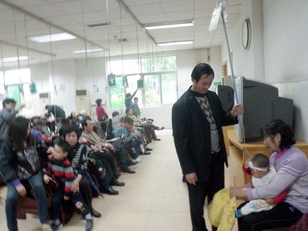在醫院的輸射室,幾十張椅子坐滿了吊針的病人,其中兒童和老人佔多數,但青壯年也不少。丁振苗說,年輕人休息不好,影響抵抗力,亦容易「中招」。目前來看病的患者以感冒、發燒居多,流感患者估計佔四成左右。