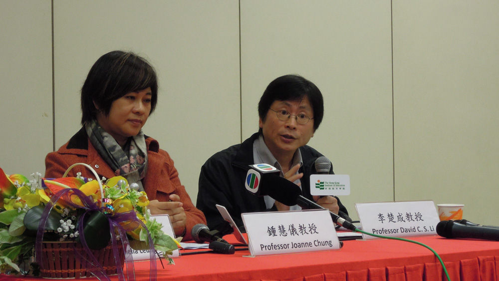 圖:鍾慧儀(左)強調,「出關試」並非畢業要求,目的是提升學生語文水平。旁為李楚成\本報記者李盛芝攝