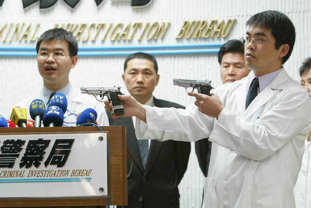 圖:台灣特偵組目前正重新調查319槍擊案。圖為2004年底檢方公布涉案同型槍枝及子彈\資料圖片