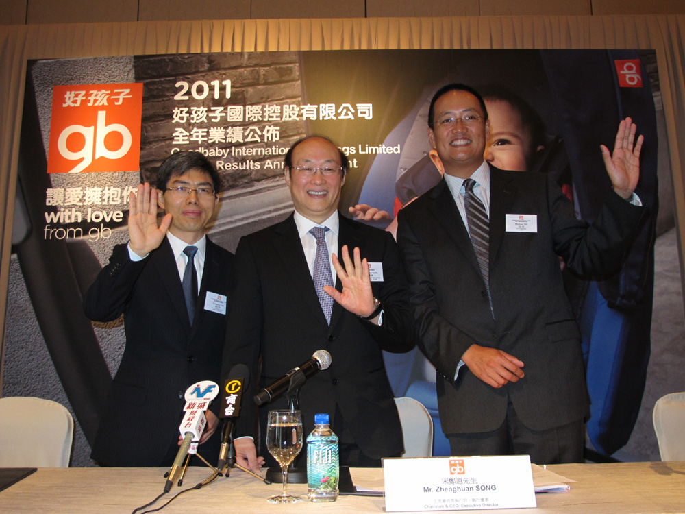 圖:左起:好孩子副總裁兼首席財務官劉同友、主席兼首席執行官宋鄭還、副總裁曲南\本報攝