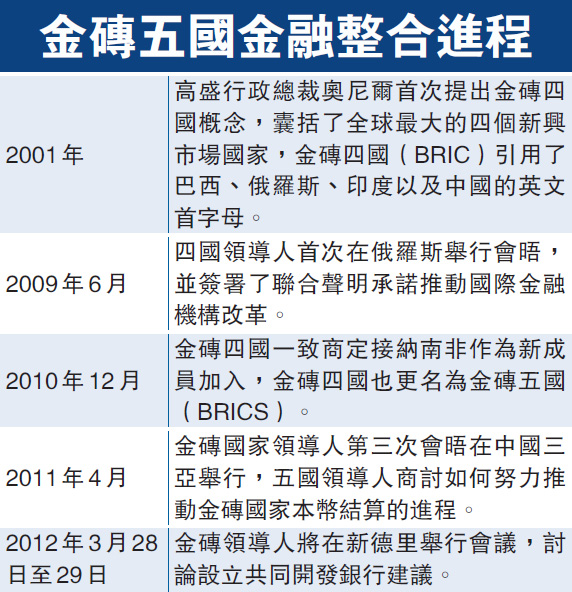 金磚五國將要成立的是一家共同開發銀行(Common Development Bank),所謂開發銀行,共有多種形式,而金磚五國所成立的將會是多邊開發銀行(Multilateral Development Bank),是指由發展中國家支持、為發展中國家的經濟和社會發展活動提供資金援助和專業諮詢的機構。