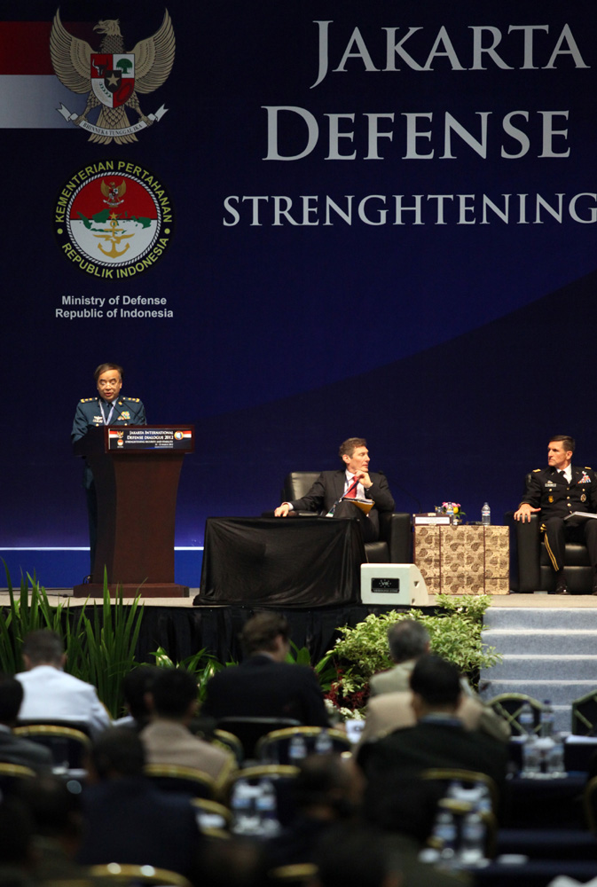 圖:中國國防大學政委劉亞洲中將21日在印度尼西亞首都雅加達出席2012雅加達國際防務對話,並發表關於非傳統安全挑戰的主題演講\新華社