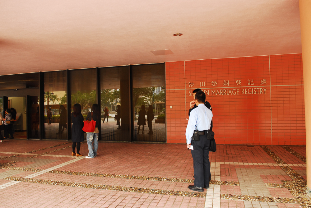 圖:女事主昨日親到沙田大會堂婚姻註冊處查問相關情況