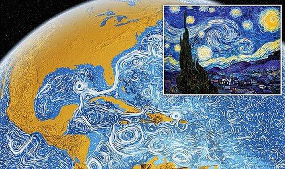 美國太空總署(NASA)利用觀測數據繪製了一幅地球表層洋流模型圖,該圖與荷蘭畫家梵高的名作《星空》極為相似,堪稱大自然的藝術傑作。