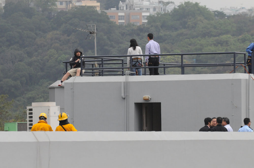 圖:警員危坐天台,兩談判專家奉召到場勸喻