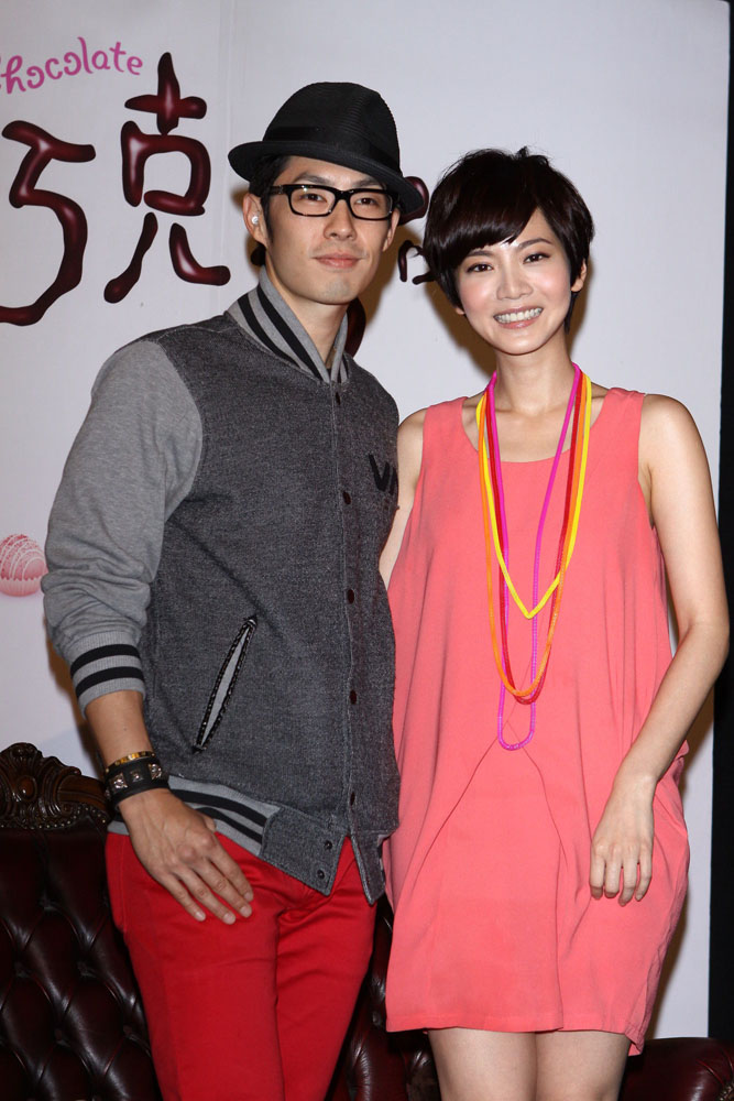 吳建豪、曾之喬、王子等主演的偶像劇《愛上巧克力》即將在台灣播映,有關方面於前天在台北舉行記者會。劇中女扮男裝的曾之喬身穿桃紅色短裙現身,吳建豪特別向她送上巧克力花束,又跟王子一同給她餵食。