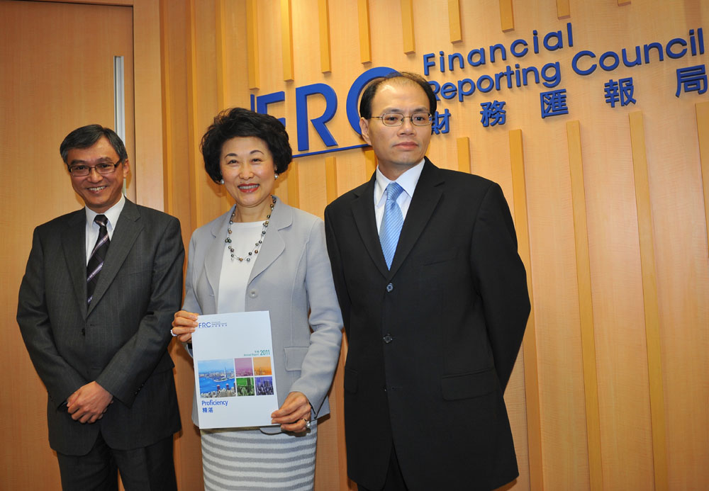 圖:左起:財匯局行政總裁甘博文,主席高靜芝,高級調查總監陳德成\本報攝