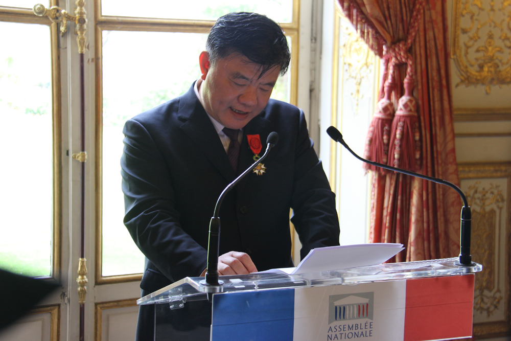 圖:12日,中國衛生部部長陳竺出席在法國巴黎拉賽宮舉行的法國榮譽軍團勳章授勳儀式並發表講話\新華社
