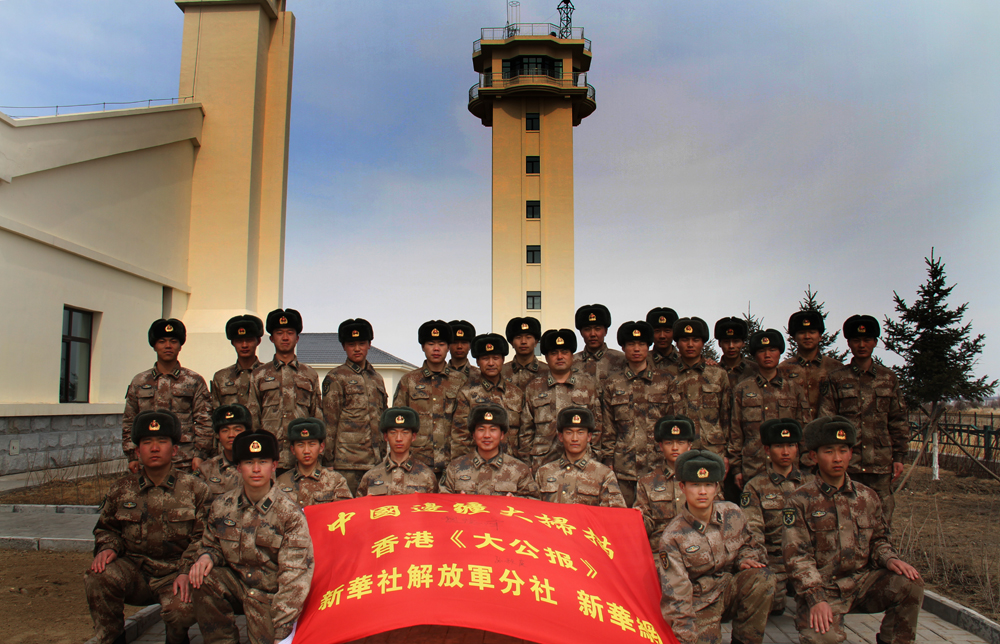 圖:駐黑瞎子島官兵在中國最東端的哨所前合影\魏德峰攝