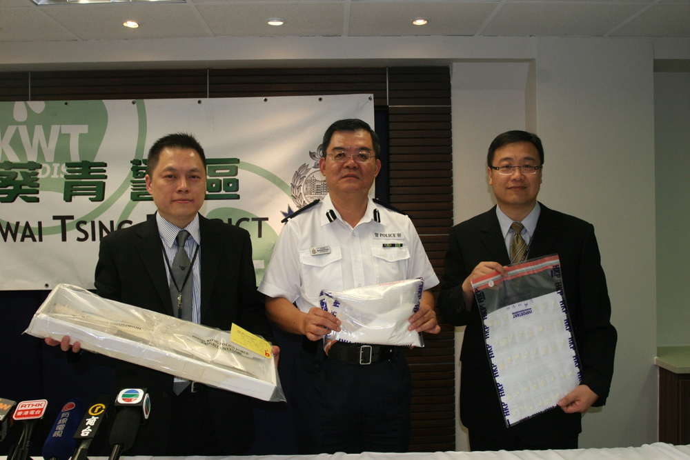 前日下午開始,葵青警區一連兩日出動,大批探員兵分多路,前往區內二十處地點大搜捕,包括掩至目標人物的住宅搜查,共拘捕了十九名男子,檢獲毒品及販毒所得財物共值五十萬元。當中一點四公斤俗稱K仔的氯胺酮、少量可卡因及一批包裝工具,市值約二十萬元;其他有現金八萬五千元,還有兩隻勞力士金表及鑽戒首飾等,警方已檢走作為證物。行動期間,探員又在屋苑等公眾地方的花槽位,檢獲五把牛肉刀及五把水喉通,是黑幫分子準備「開片」武器,不過初步相信並未用來犯案。