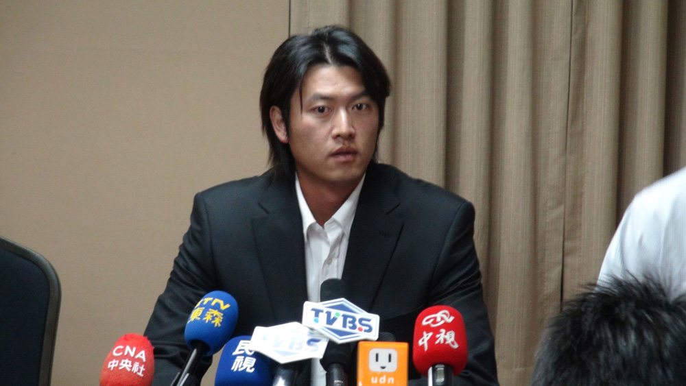 圖:旅美職棒投手王建民23日在美國就婚外情向媒體說明,並認錯和向家人、球迷道歉\中央社