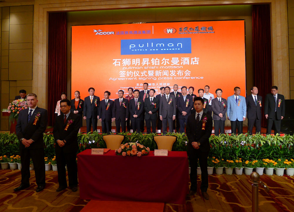 【本報記者鄧德相、蔣煌基石獅電】由香港王氏仁森機構董事局主席王明洋投資五億元人民幣在家鄉福建石獅興建的明昇鉑爾曼酒店,18日在當地舉行冠名管理簽約儀式暨新聞發布會。法國雅高酒店集團大中華區運營副總裁溫樂禮與香港王氏仁森機構董事副總經理王經潑分別代表雙方簽署了合作協議。福建省人大常委會副主任兼秘書長張健,福建省僑辦副主任劉良輝,全國政協委員、香港福建社團聯會副主席盧溫勝,福建省旅遊局行業管理處處長蘇永清等出席簽約儀式。