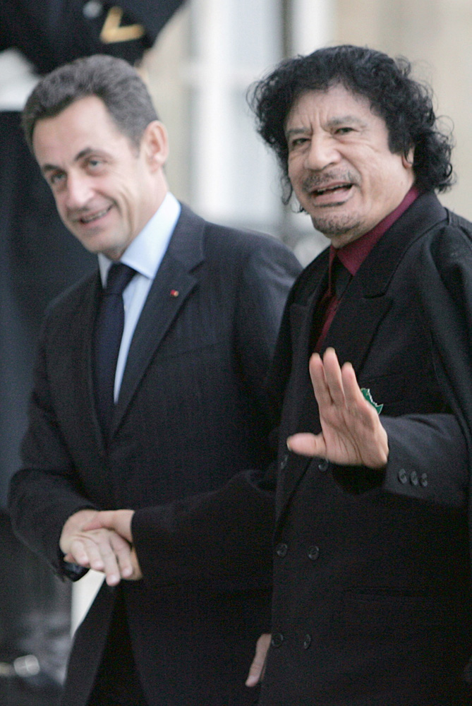 圖:2007年12月,法國總統薩爾科齊(左)接見到訪愛麗舍宮的利比亞前領導人卡扎菲/資料圖片