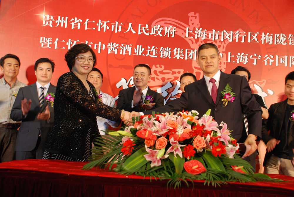 出席簽約儀式的有貴州仁懷市人民政府副市長喻陽洪、上海閔行區梅龍鎮黨委委員、副鎮長張明國、中醬酒業連鎖集團創始人唐晨光等和來自仁懷市的白酒生產企業的代表和社會界、文藝界的代表共二百多人參加了簽約儀式。