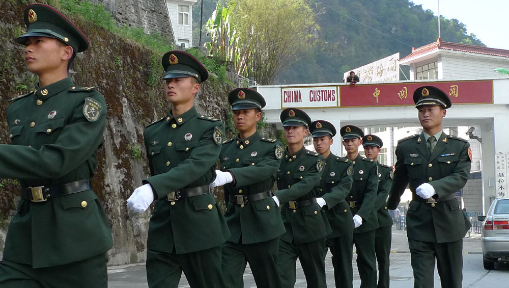 圖:駐軍邊防一連在樟木鎮巡邏值勤/陳懷祥攝