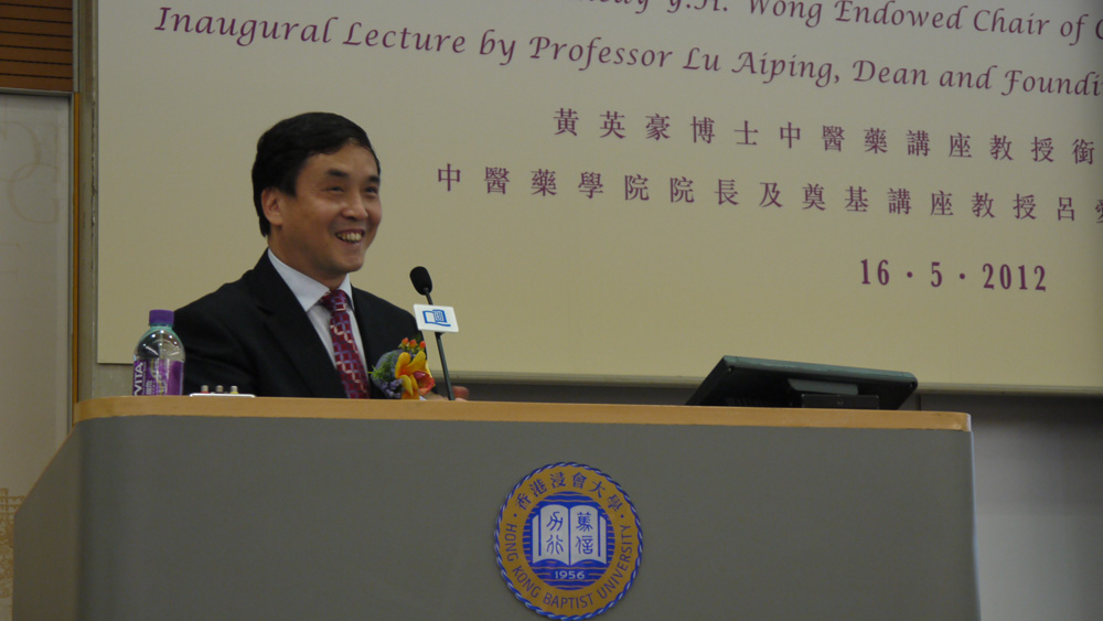 圖:呂愛平獲頒黃英豪博士中醫藥奠基講座教授後,發表就職演講