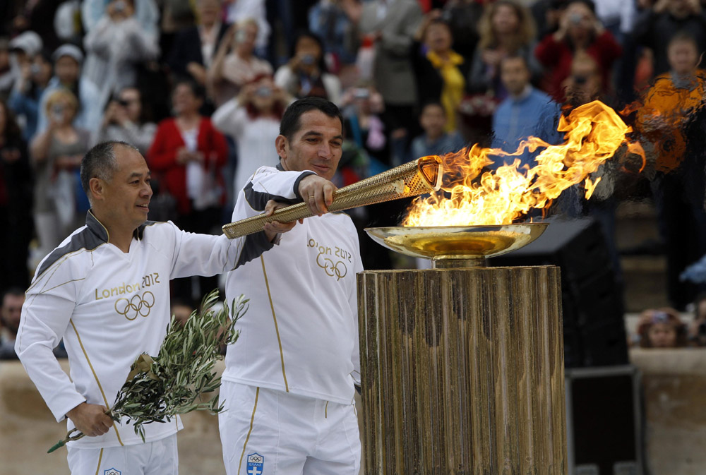 希臘總統帕普利亞斯、希臘奧委會主席卡普拉洛斯、倫敦奧組委主席塞巴斯蒂安·科、英格蘭足球巨星碧咸和數千名雅典市民一起參加了聖火交接儀式。