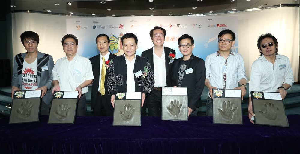 圖:多位本港知名漫畫家的手印將於漫畫星光大道中展出,(左起)劉雲傑、上官小寶、林廣成、黃玉郎、廖永亮、馬榮成、李志清、邱福龍