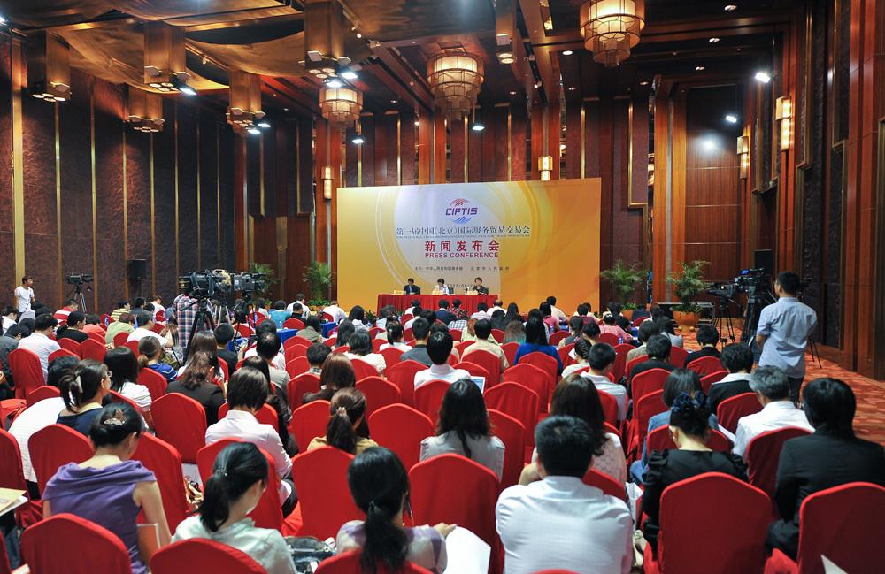 圖:22日,商務部和北京市政府聯合召開第一屆中國(北京)國際服務貿易交易會(簡稱京交會)新聞發布會/新華社