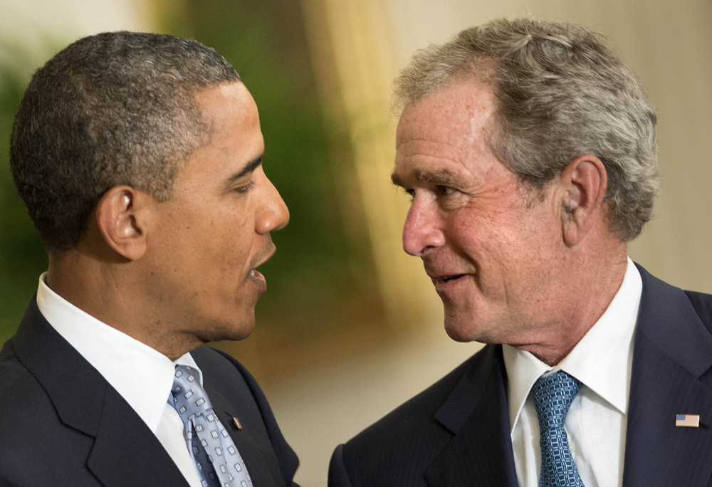 爭取連任的奧巴馬,在選戰期間炮火四射,猛轟前任小布什在國內外都留下爛攤子。但在揭幕儀式上,他轉變態度,反而對「9·11」事件之後布什鼓舞士氣團結民心的表現大加推崇。