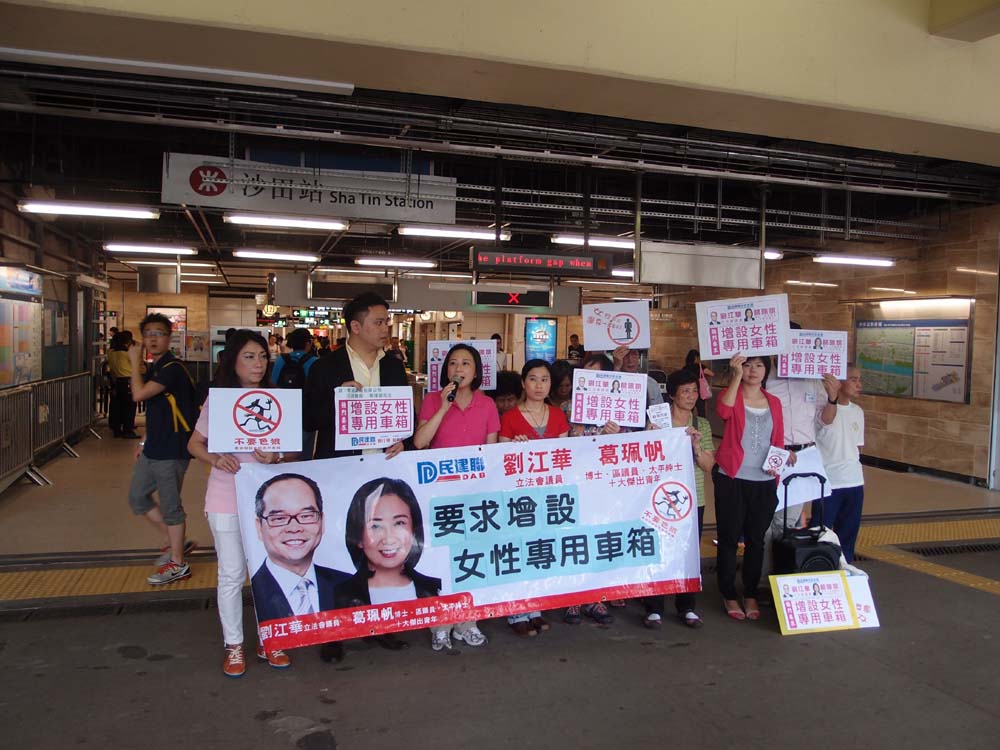 圖:民建聯與十多名市民到沙田港鐵站請願,要求港鐵盡快設立女性專用車廂,及要求於全線列車加裝閉路電視系統