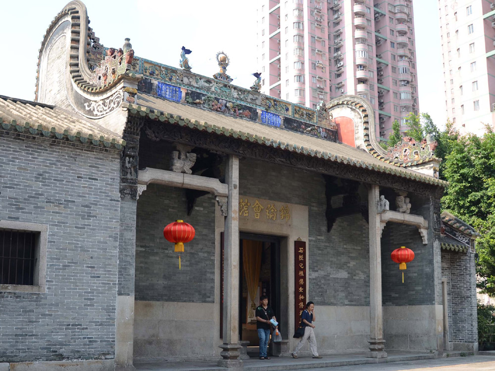 錦綸會館始建於清雍正元年(一七二三年),由當時廣州絲織業的東家們出資在西關建成,以供奉和紀念絲織行業的祖師張騫,並作為紡織業老闆們聚會議事的場所,當時每年年初,廣州絲織行業的老闆均聚於此,共同商定絲綢商品的價格及規格,然後到廣州十三行,將絲織品通過海上絲綢之路,運往世界各地。如今,在錦綸會館內,保留有二十一塊碑刻,部分碑刻上刻滿了錦綸會館興建、修繕時捐款商舖號及人名。據記載,興建錦綸會館時,捐助的絲織業商舖號和個人有一千三百三十八個,由此可見當時廣州從事絲織業商家人數之多。
