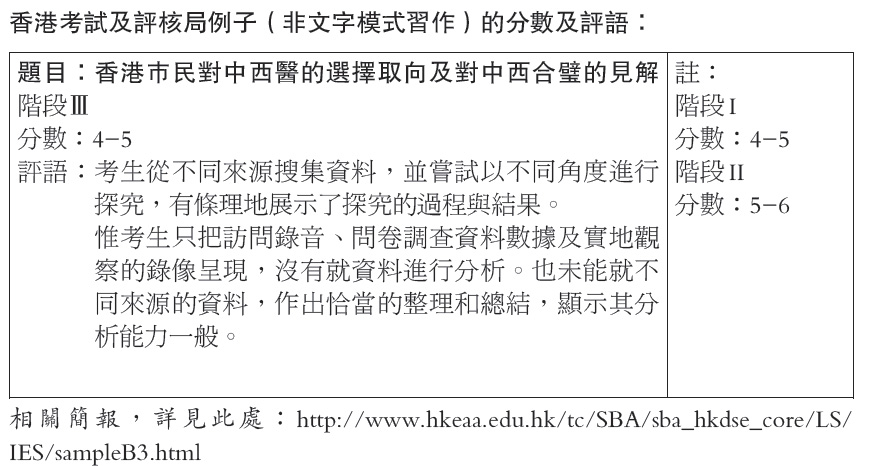 香港考試及評核局例子(非文字模式習作)的分數及評語:(見圖)