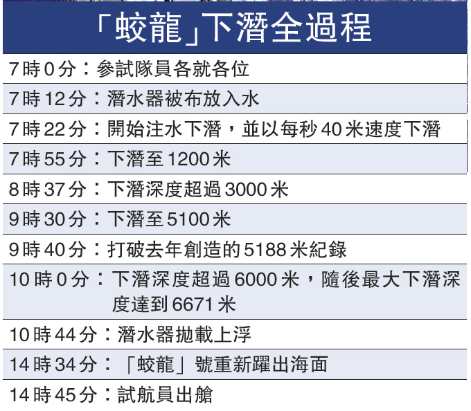 蛟龍比「深海挑戰者」堅固\本報記者\馬浩亮