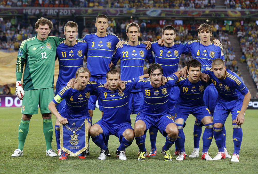 圖:烏克蘭國家隊19日參加歐國杯D組最後一輪與英國隊比賽前集體合照/美聯社